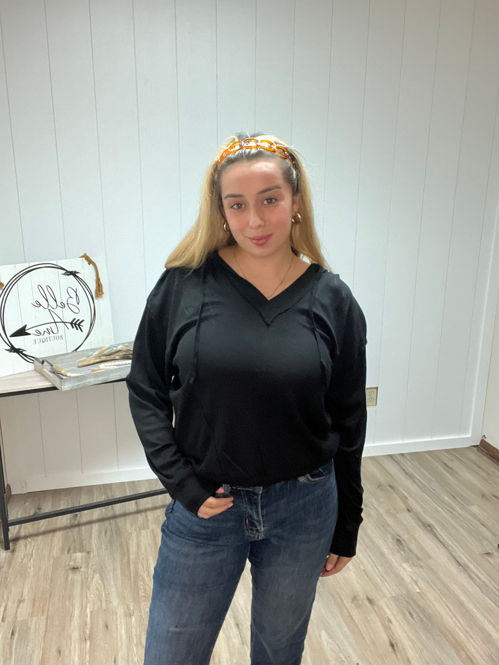Relaxed Fit Notch Neck Ribbed Hoodie