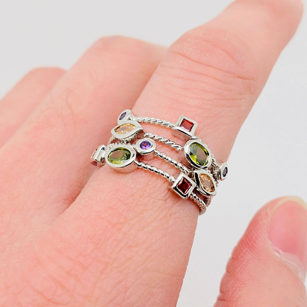 Women Inlaid Colored Cubic Zirconia Ring