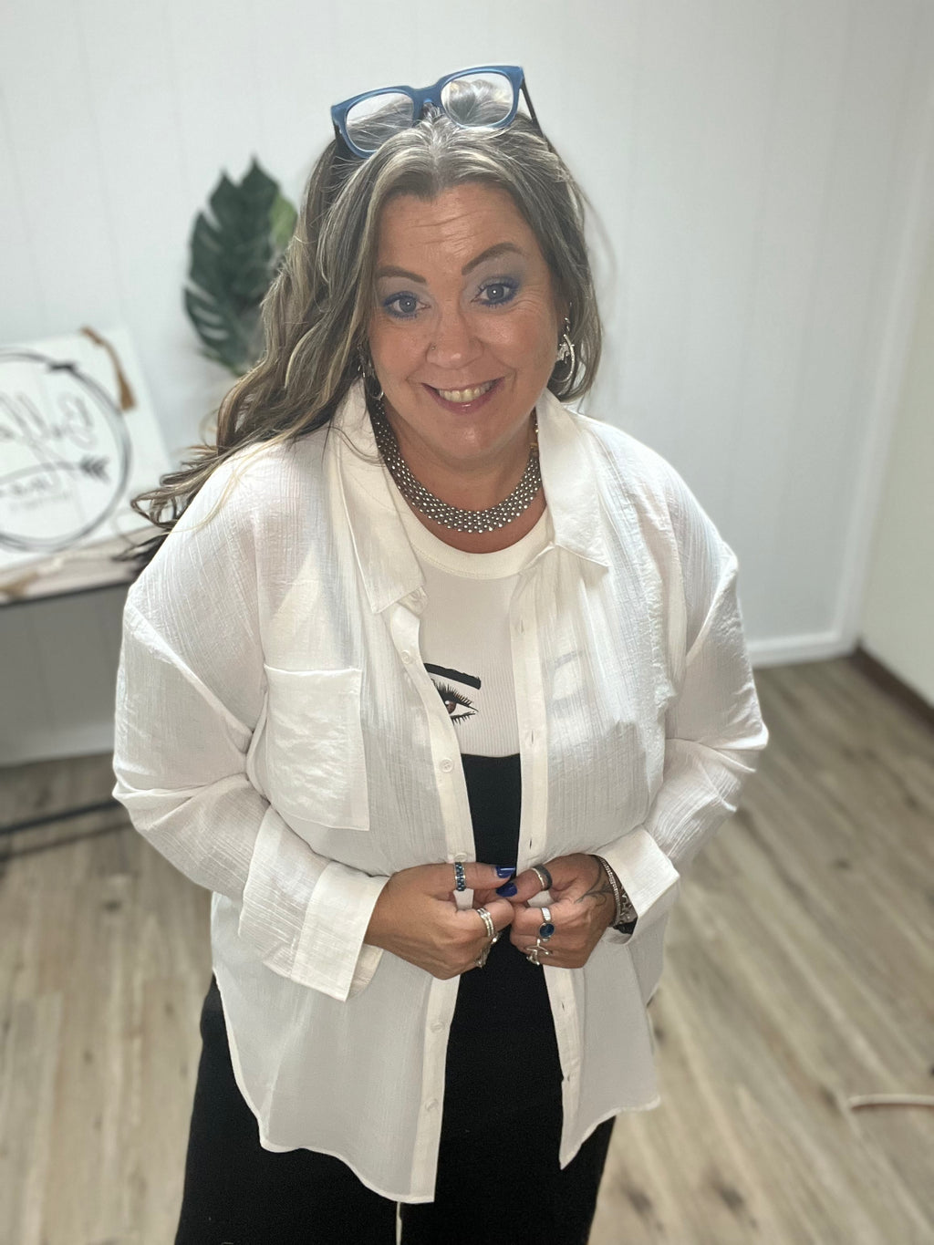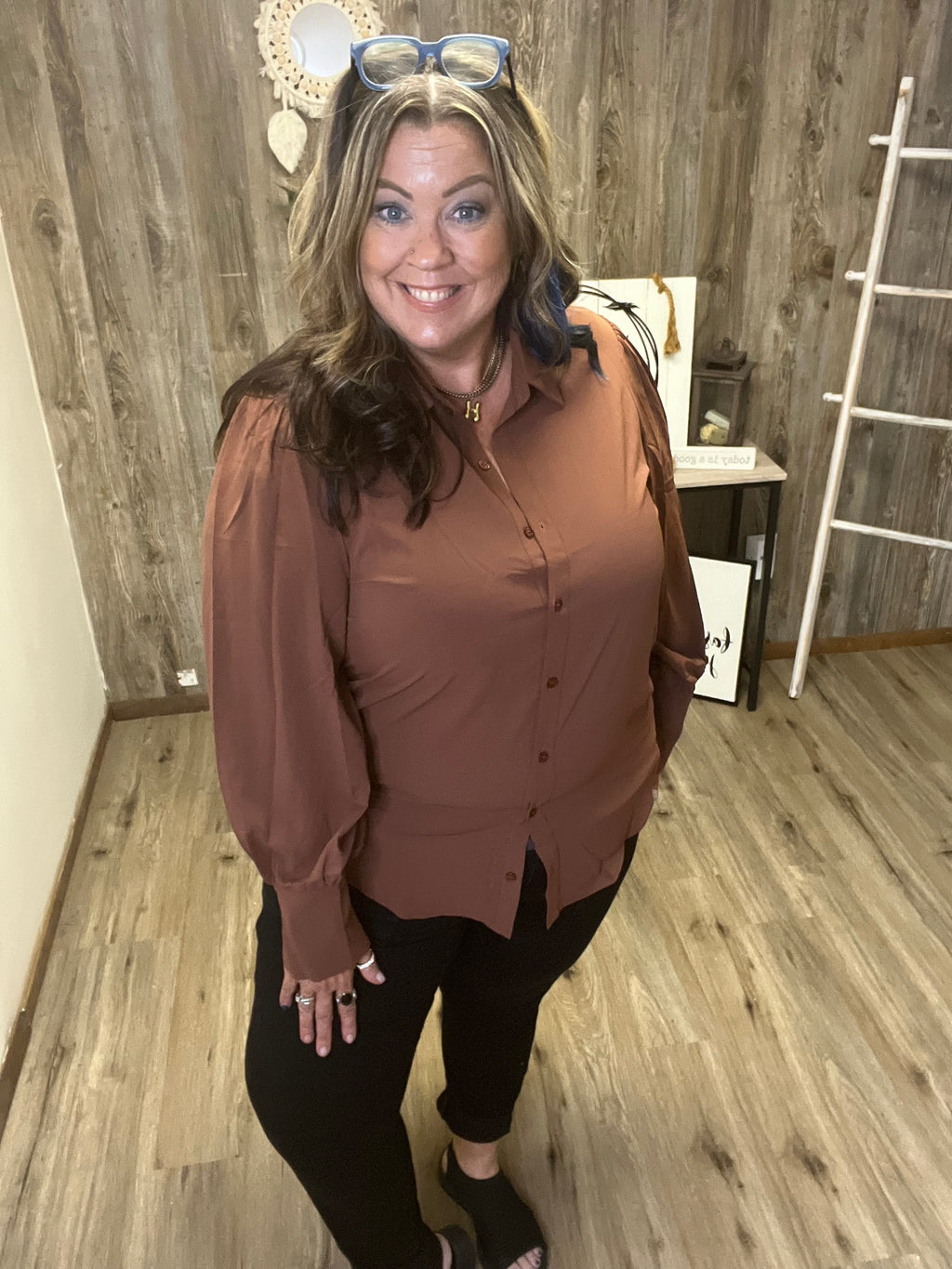 LONG SLEEVE BUTTON DOWN TOP COLLARED